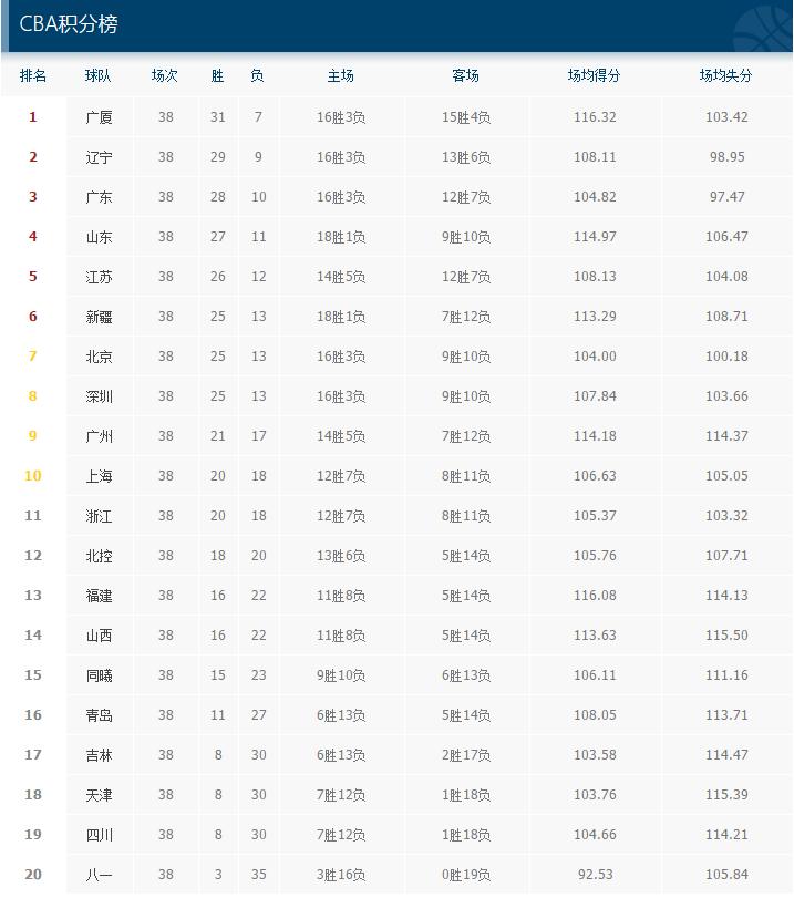 按他们在常规赛中所有比赛(总)的分数,高者列前。